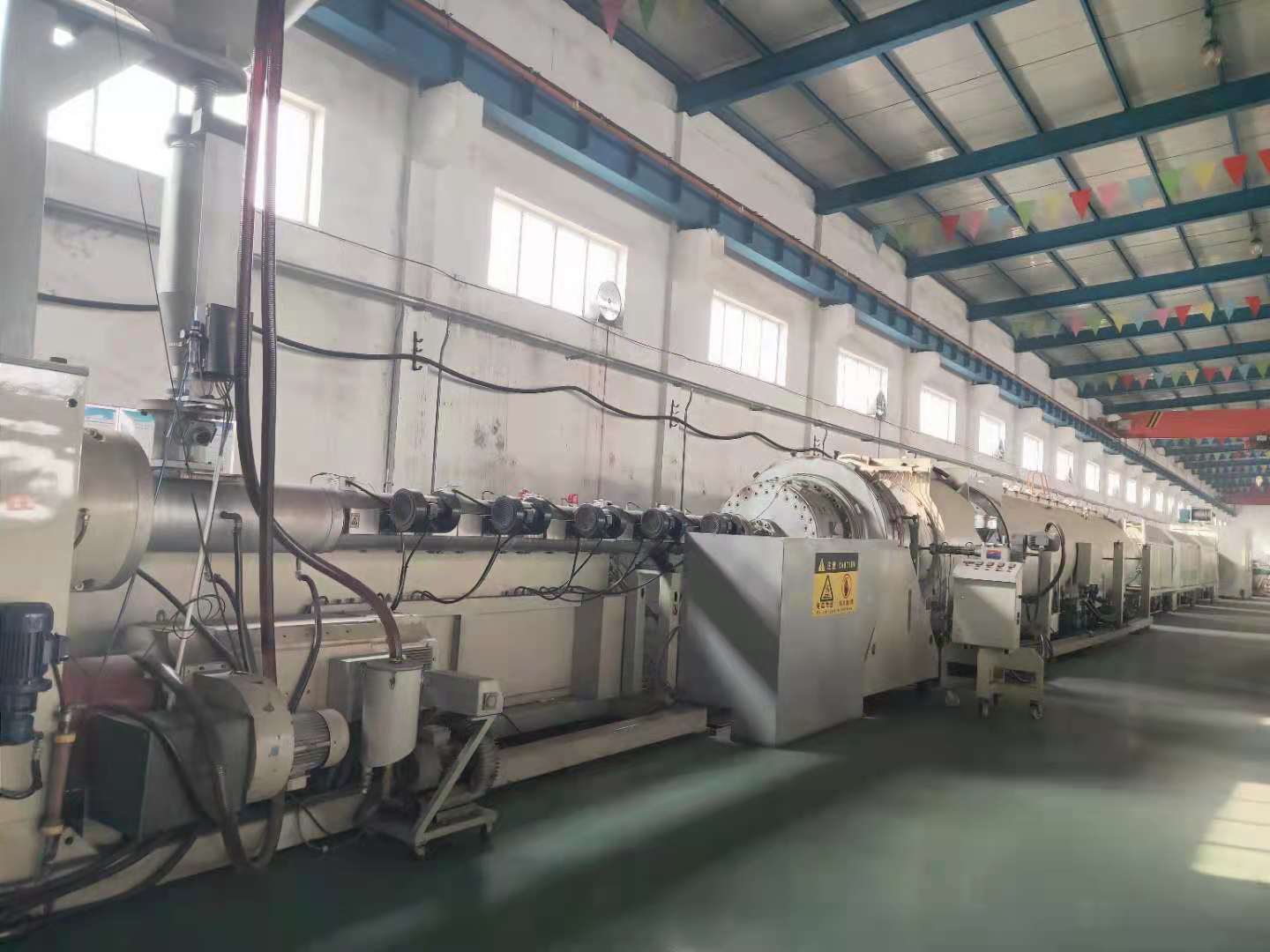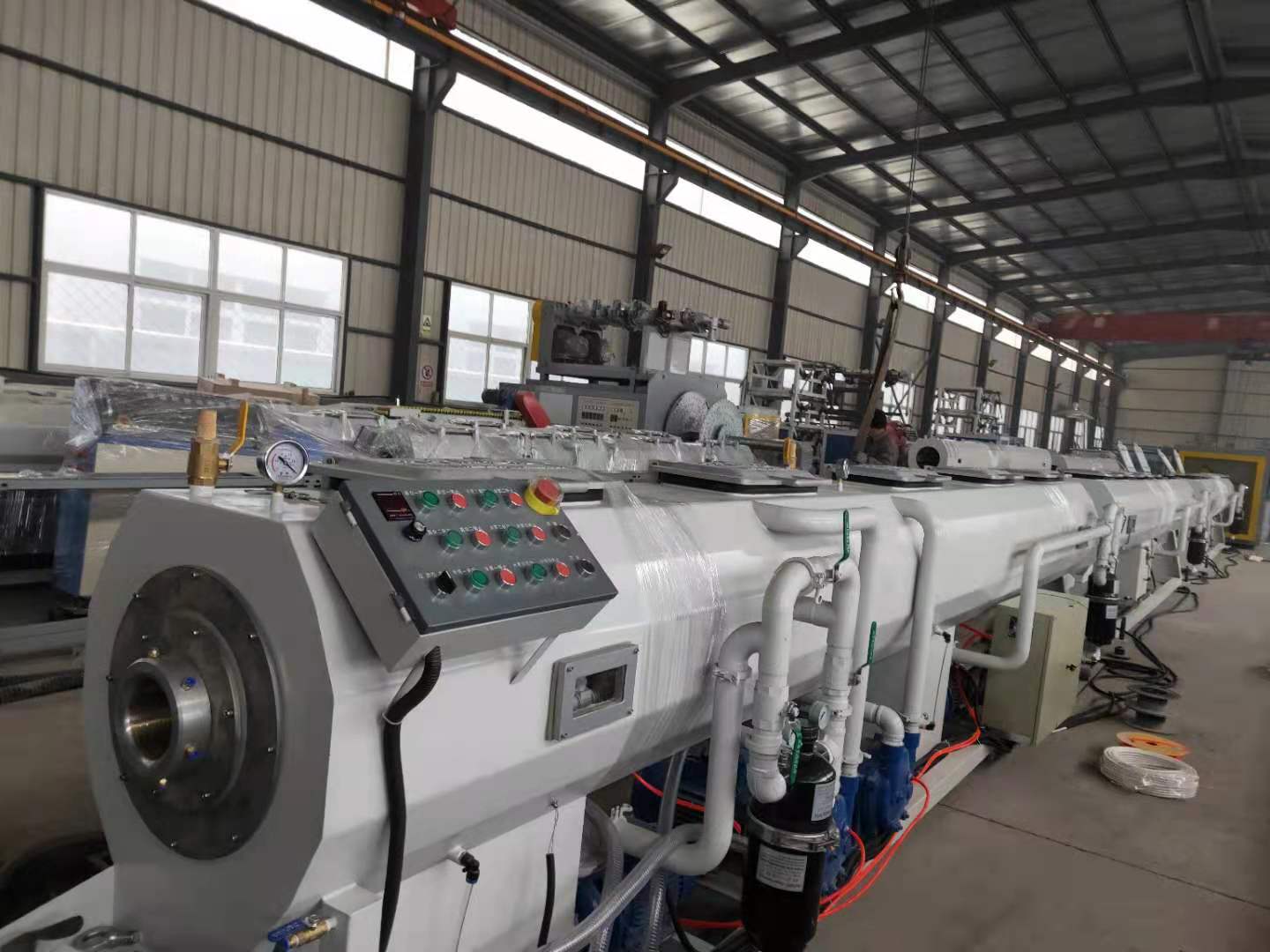 3、HDPE給水管設(shè)備選擇使用多履帶牽引機以及高精度切割機,使其具有低噪音、高效率耐用等多種特性;